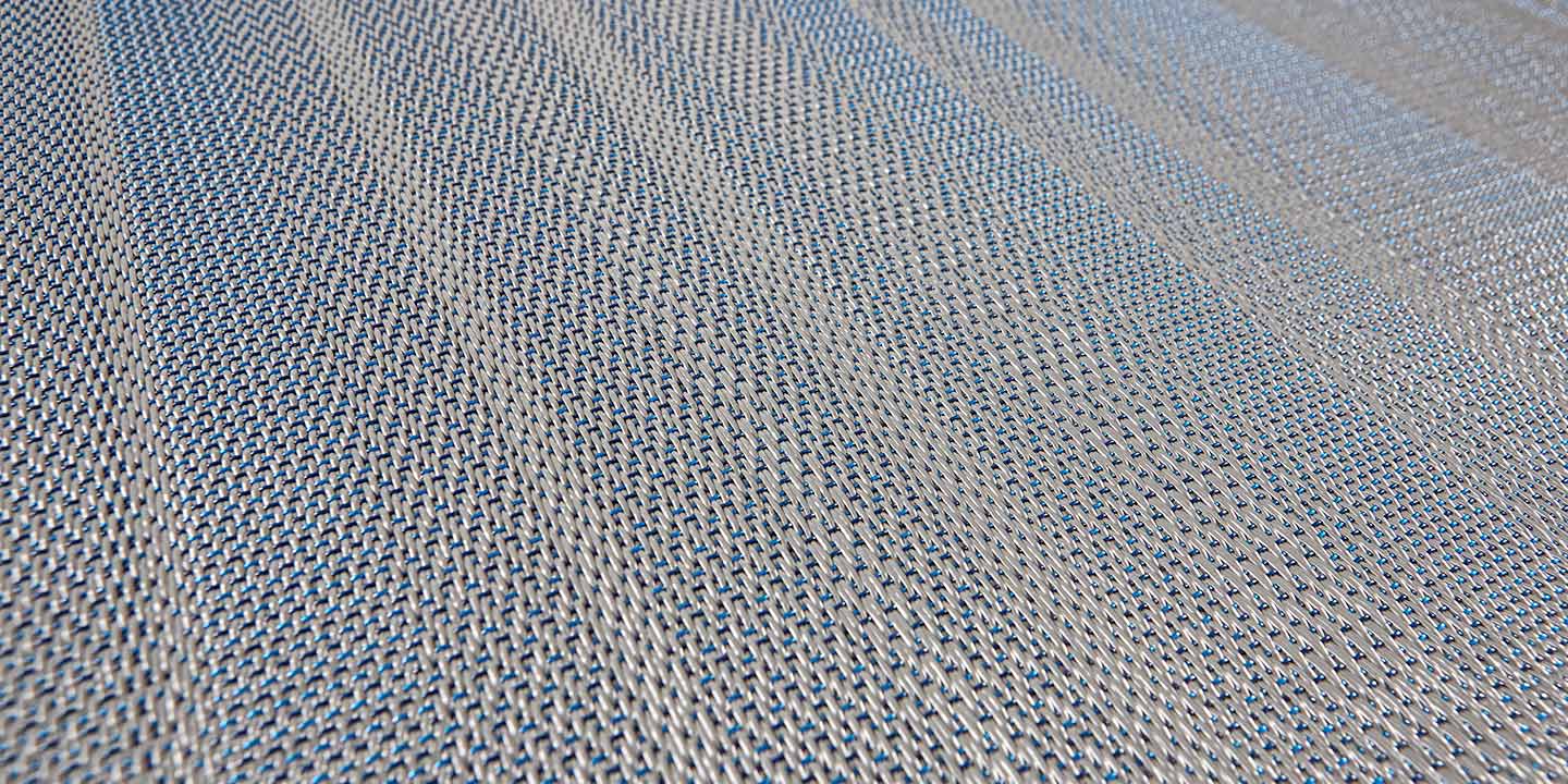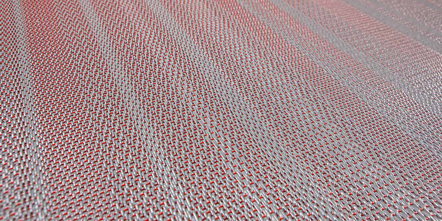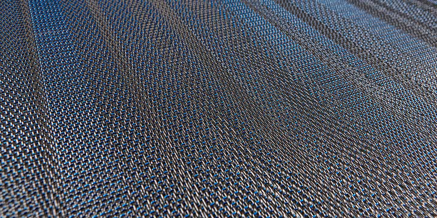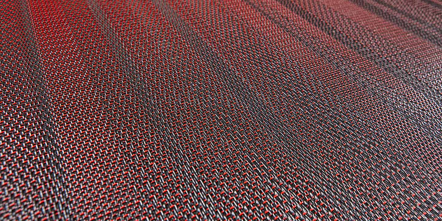 (+ un 5 strato opzionale per la versione acustica, costituito da materiale in feltro contenente PET da bottiglie riciclate, che aiuta ad attenuare l’impatto di suoni e rumori). Filato a sezione a ellissoidale, ordito monocolore o rigato e trame alternate.