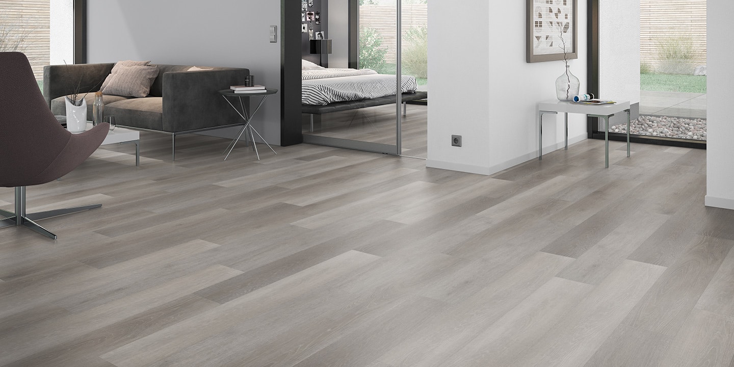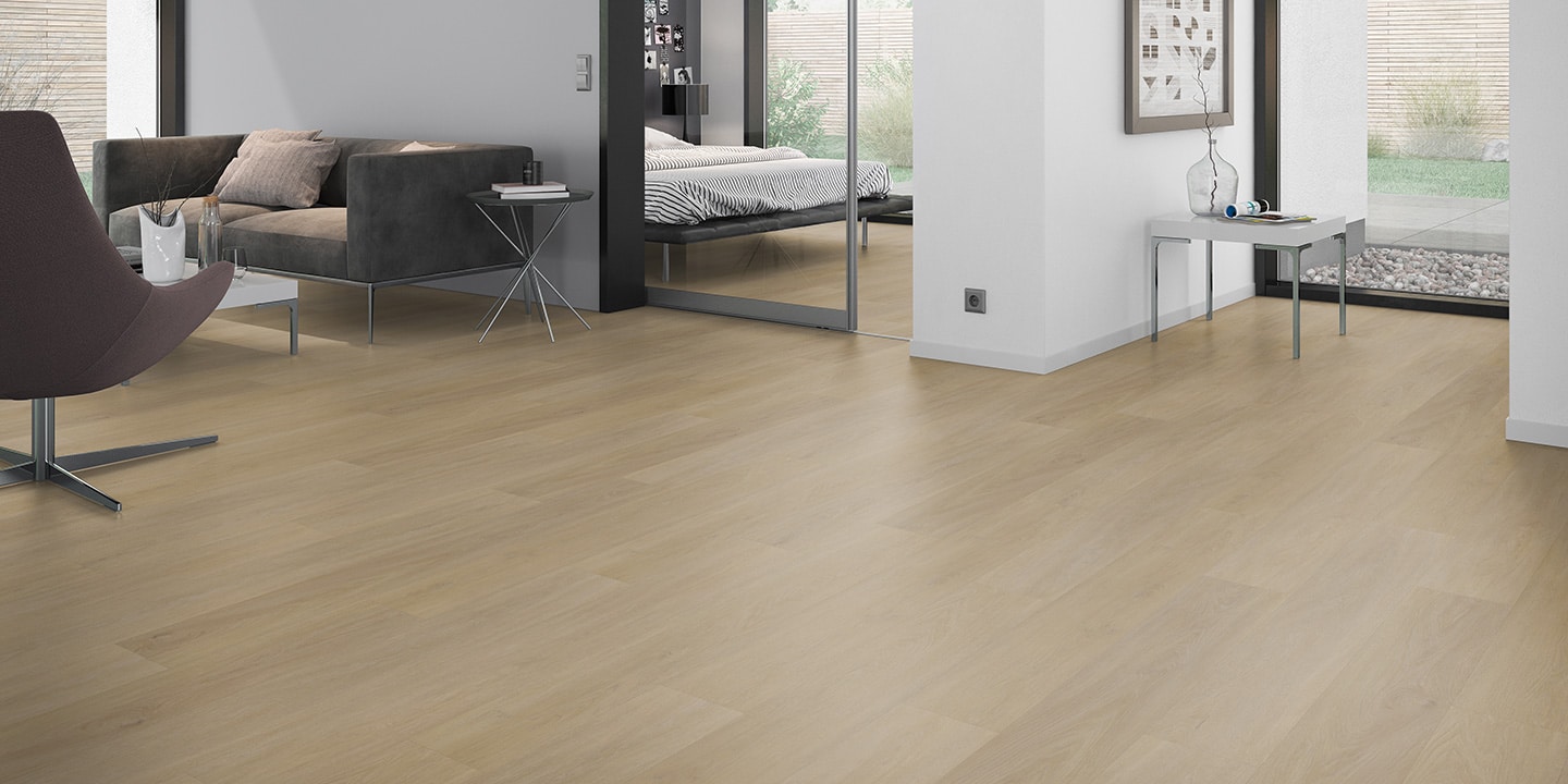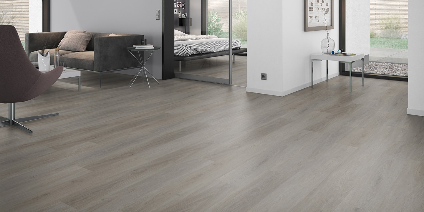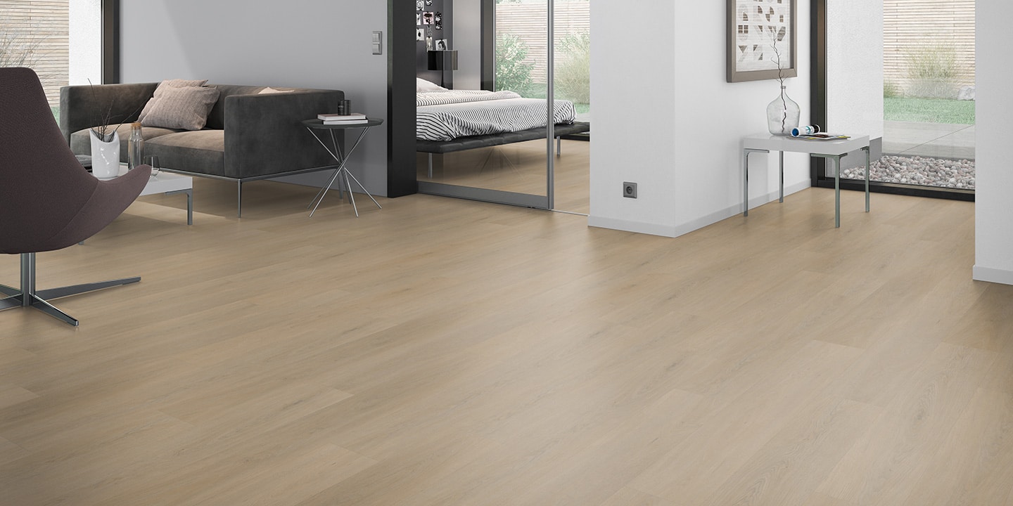 Pavimentazione vinilica LVT ad incollo; Strato di usura trasparente da 0,55 mm; Disegno stampato ad alta definizione; Strato di stabilizzazione aggiuntivo; Strato intermedio di stabilizzazione; Strato di controbilanciatura anti imbarcamento.