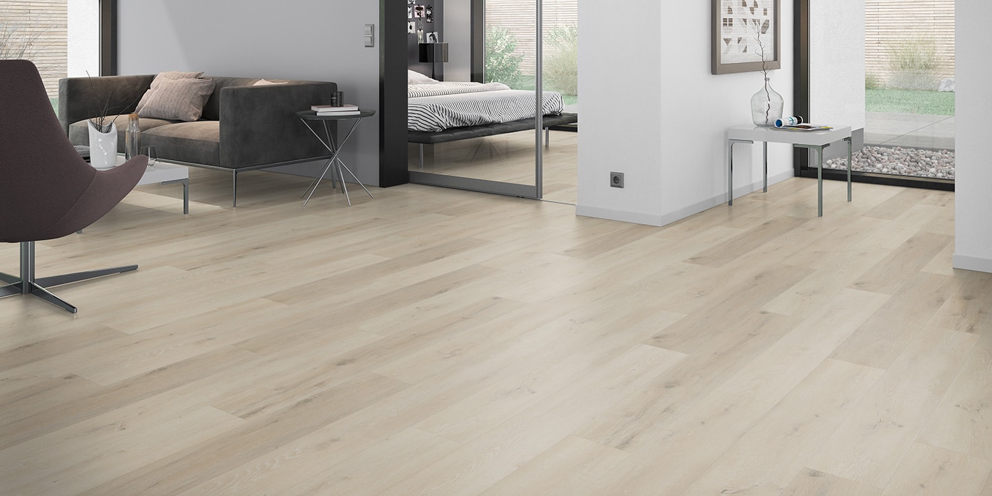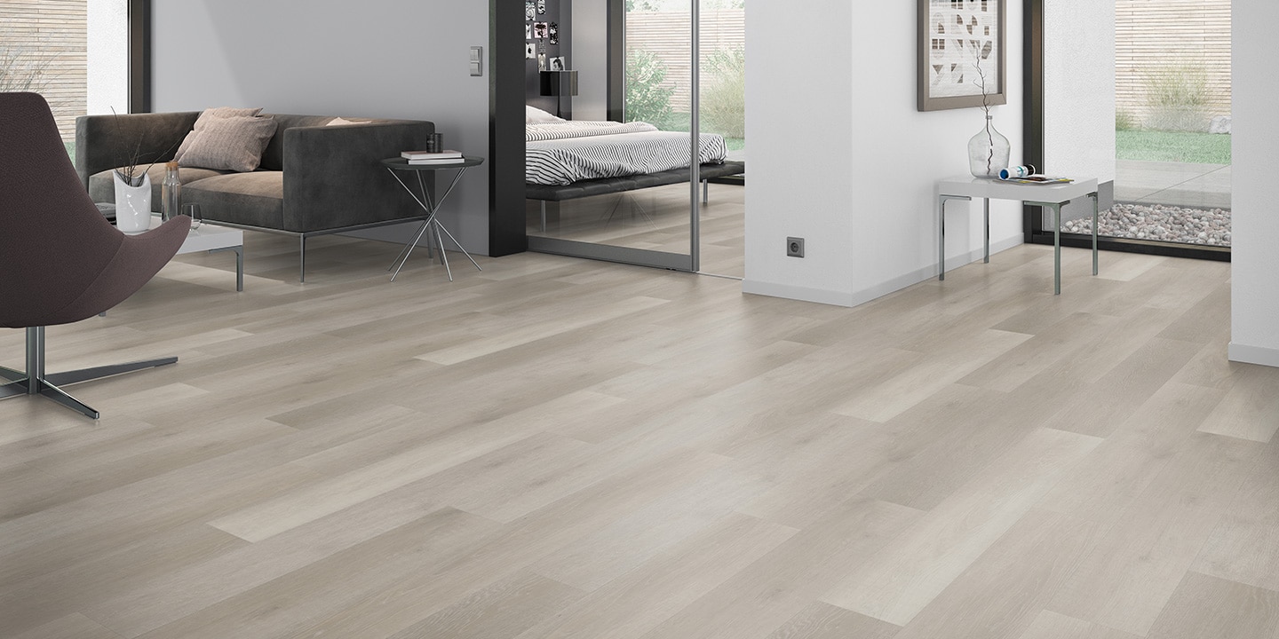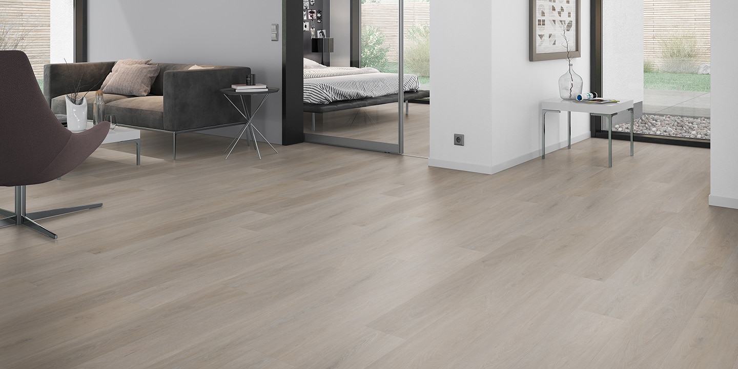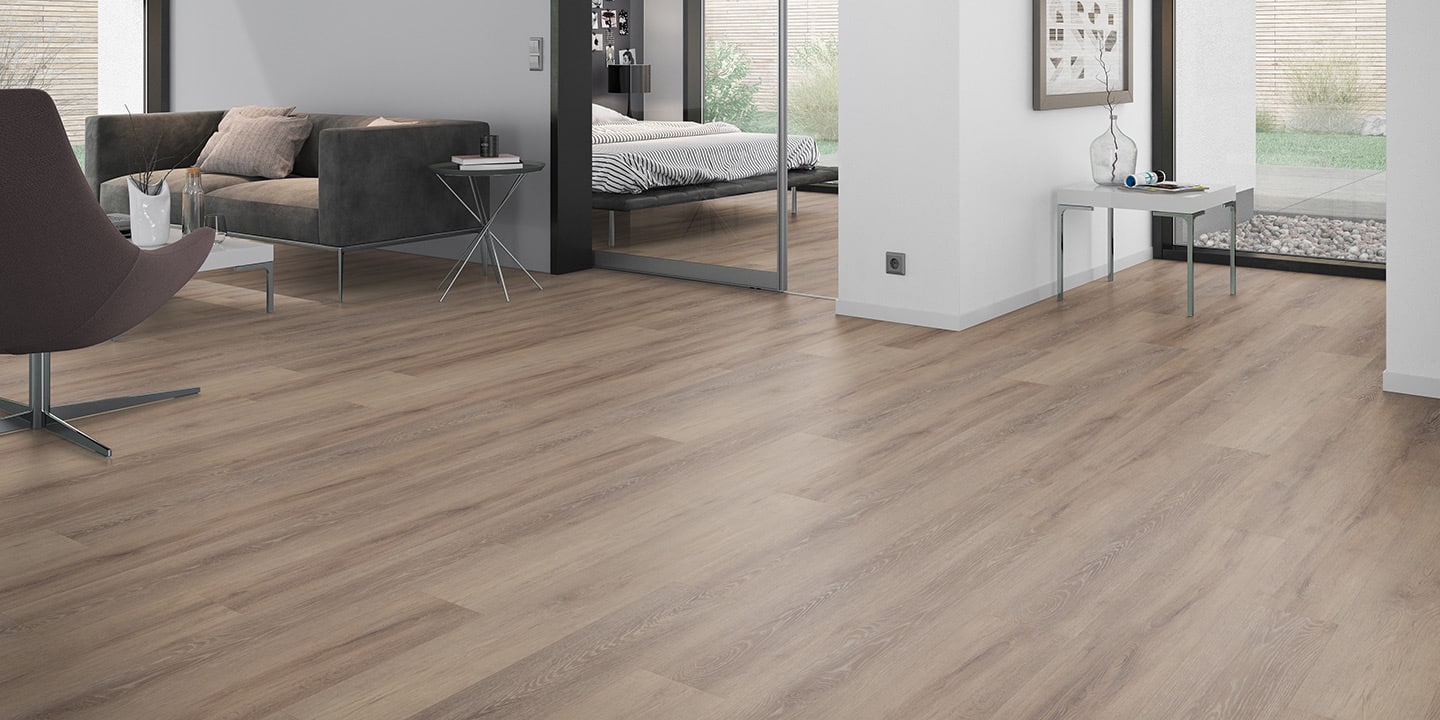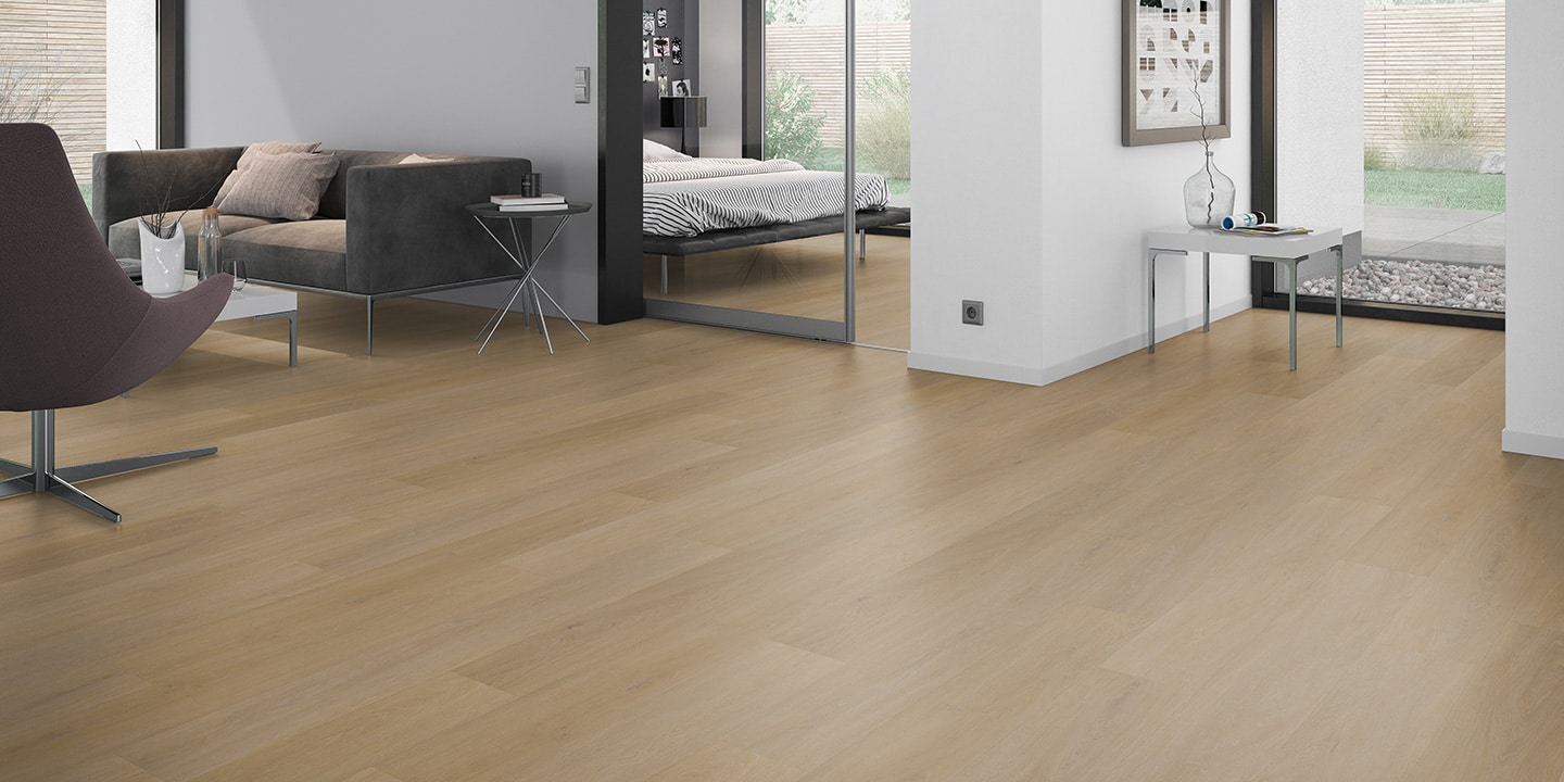 Pavimentazione vinilica LVT ad incollo; Strato di usura trasparente da 0,55 mm; Disegno stampato ad alta definizione; Strato di stabilizzazione aggiuntivo; Strato intermedio di stabilizzazione; Strato di controbilanciatura anti imbarcamento.