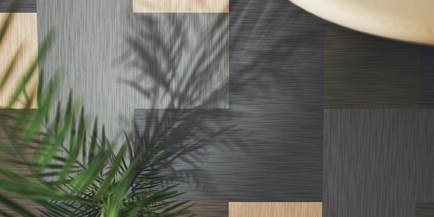 (+ un 5 strato opzionale per la versione acustica, costituito da materiale in feltro contenente PET da bottiglie riciclate, che aiuta ad attenuare l’impatto di suoni e rumori). Filato a sezione “H”. Trama multicolore coassiale, tessitura Jacquard.