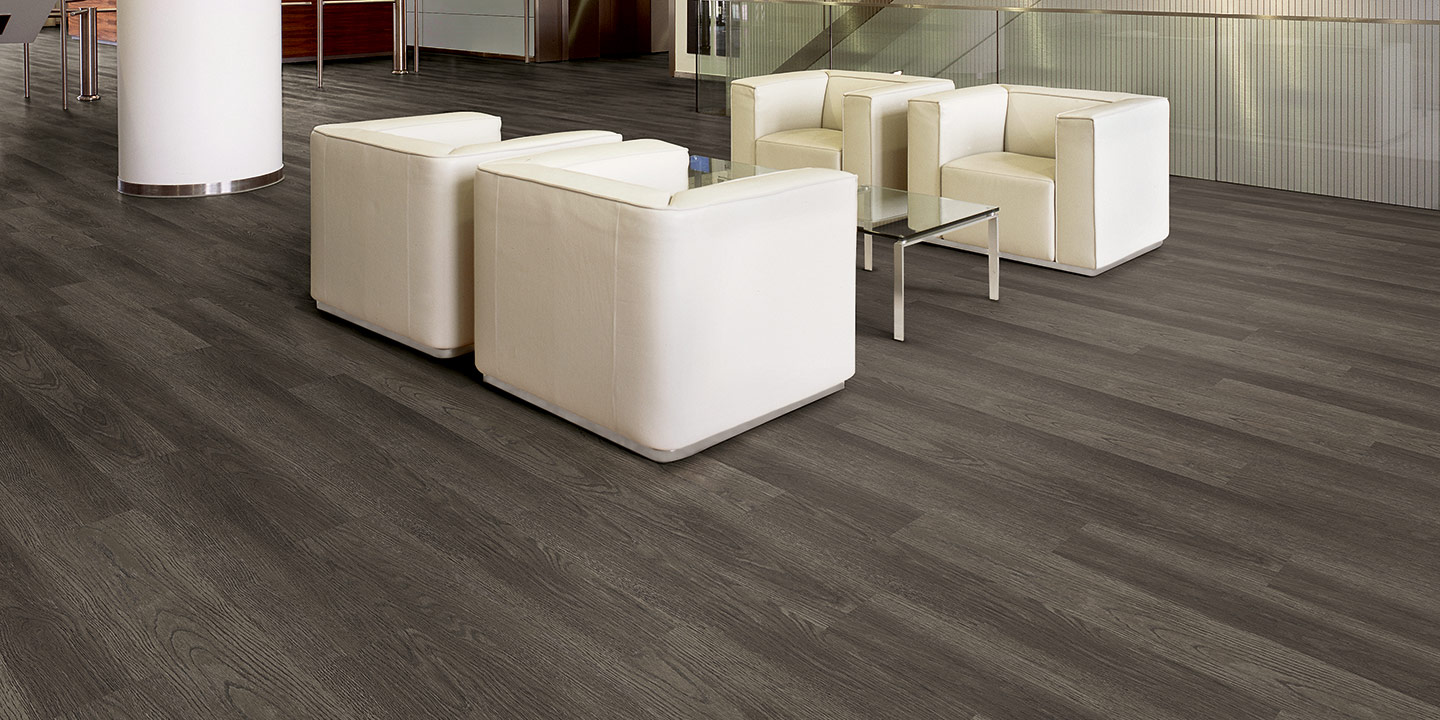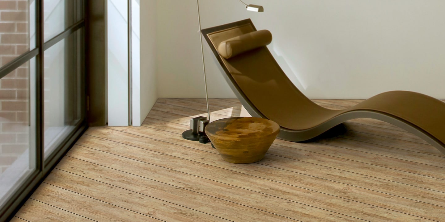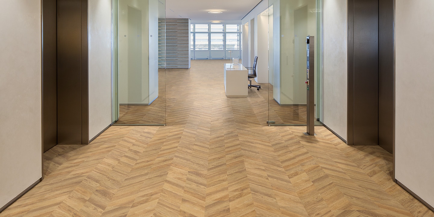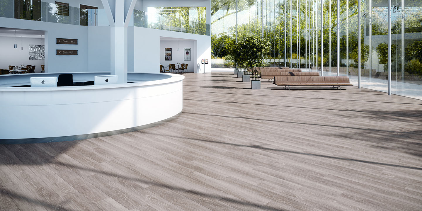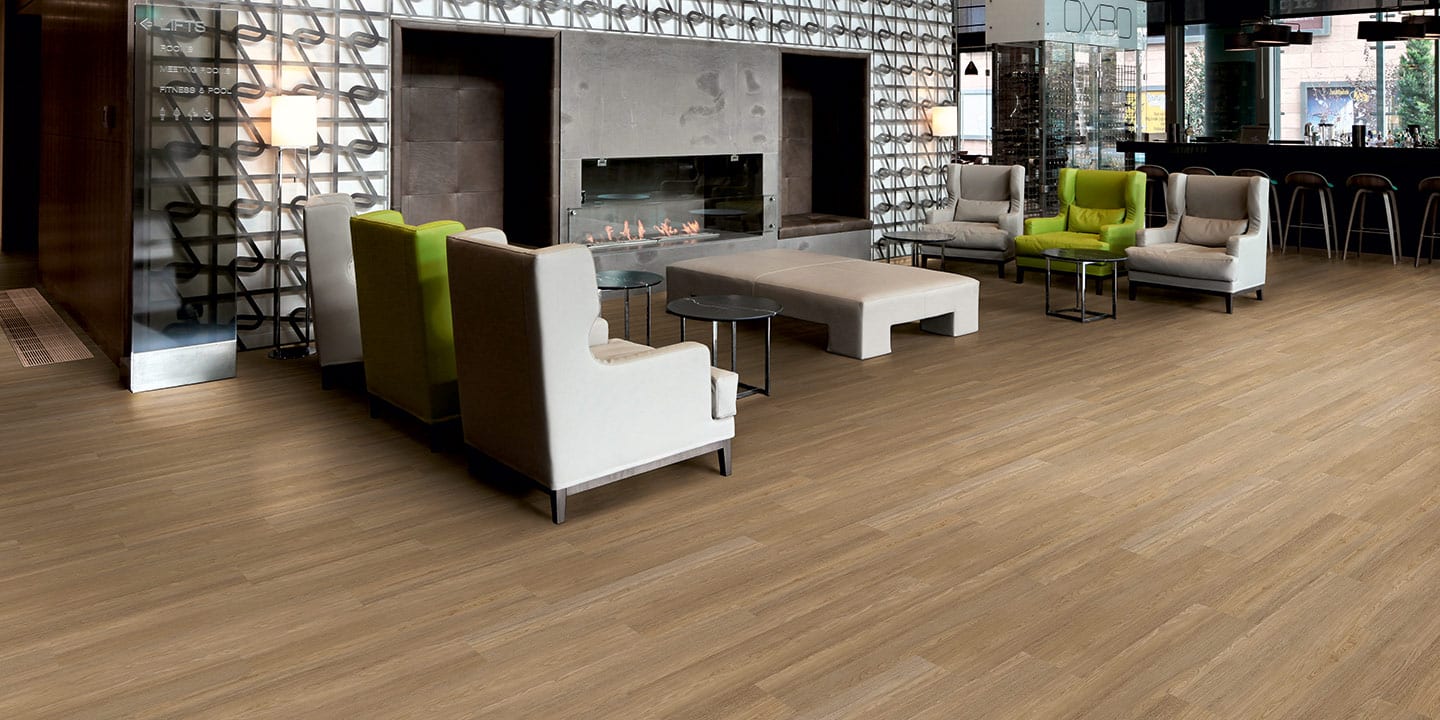 Pavimento vinilico stratificato, pressato, antistatico, flessibile, stampato, saldabile, con decori effetto legno.