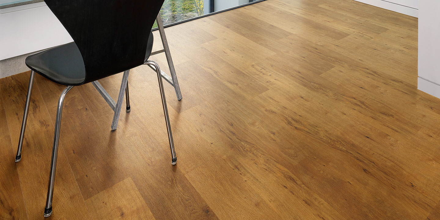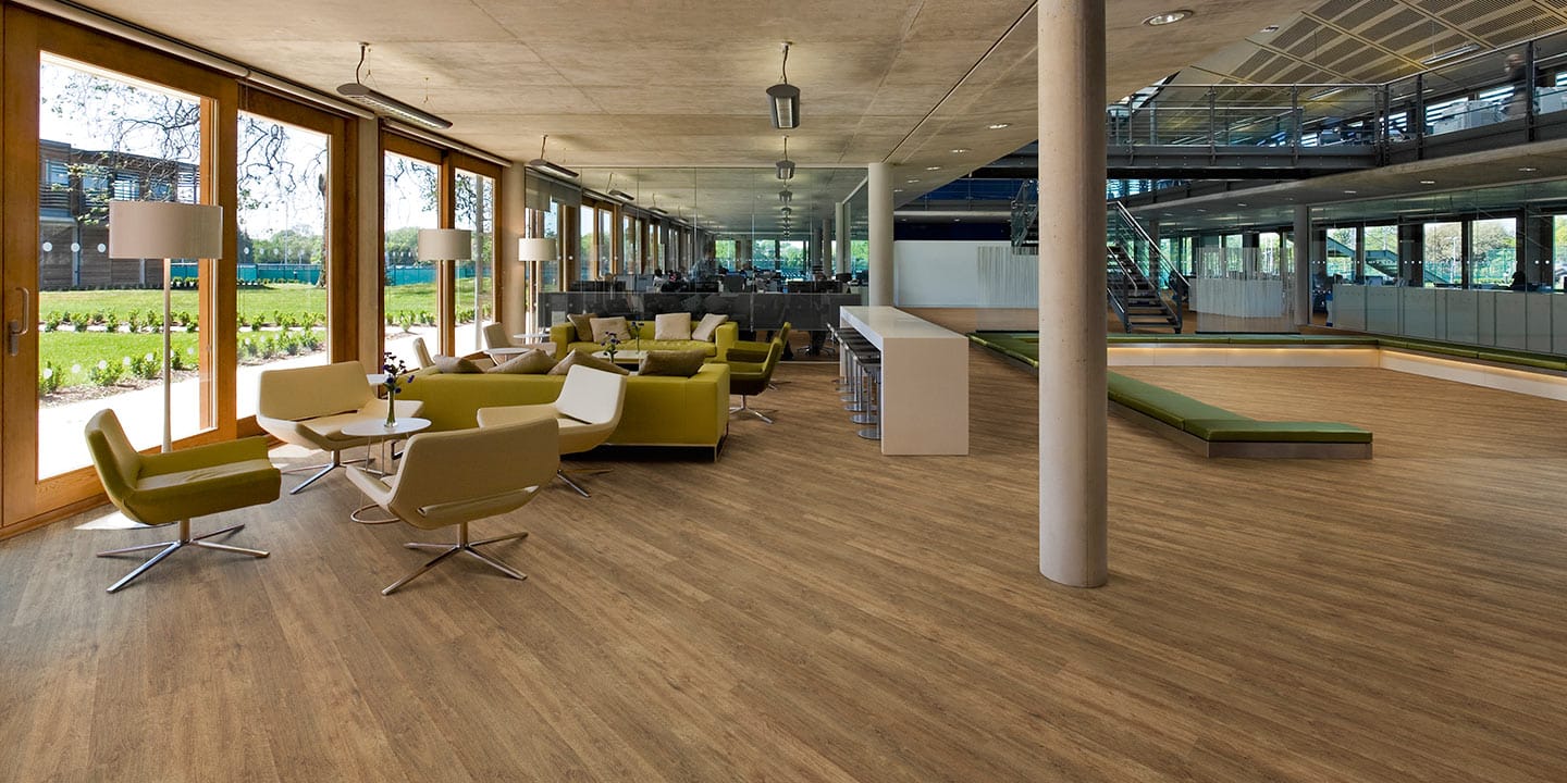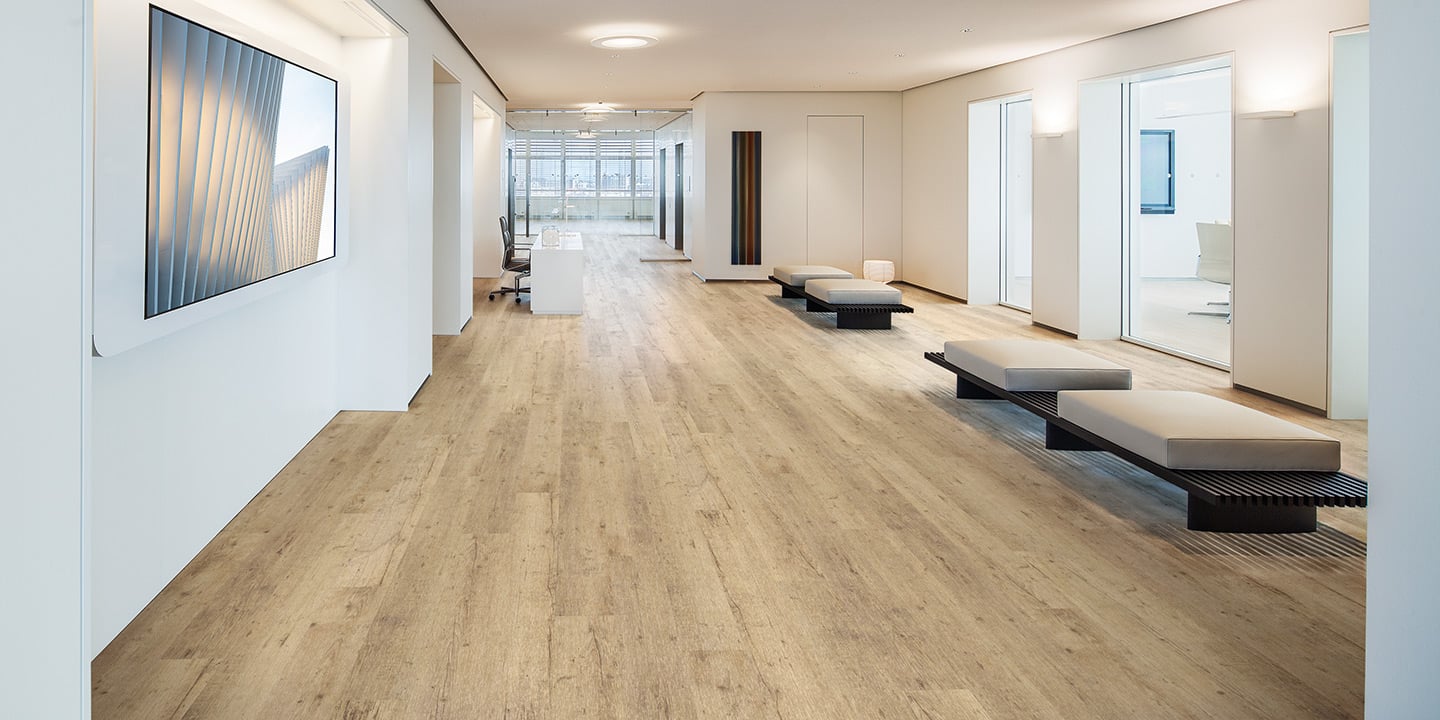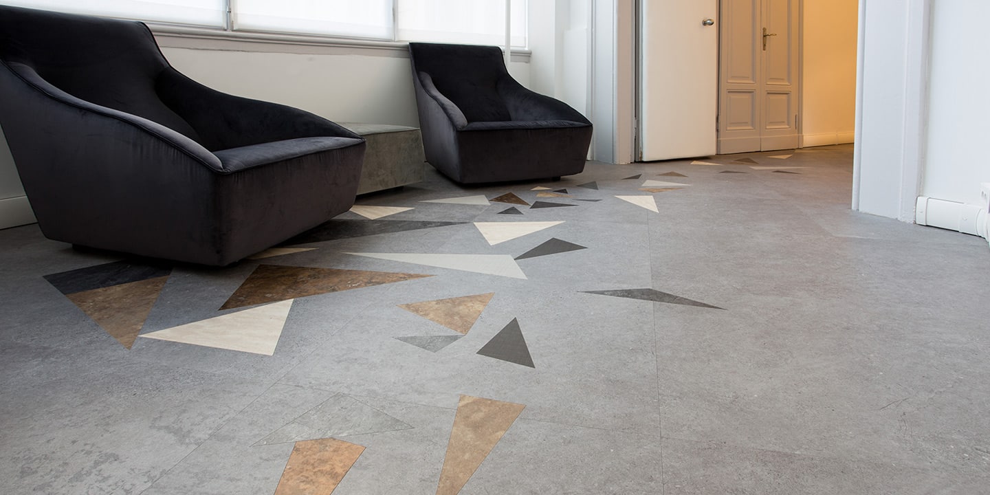 Pavimento vinilico stratificato, pressato, antistatico, flessibile, stampato, saldabile, con decori effetto legno.