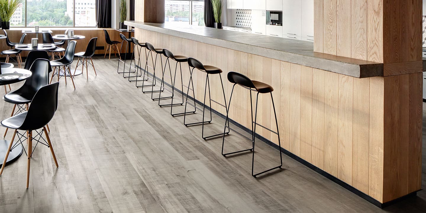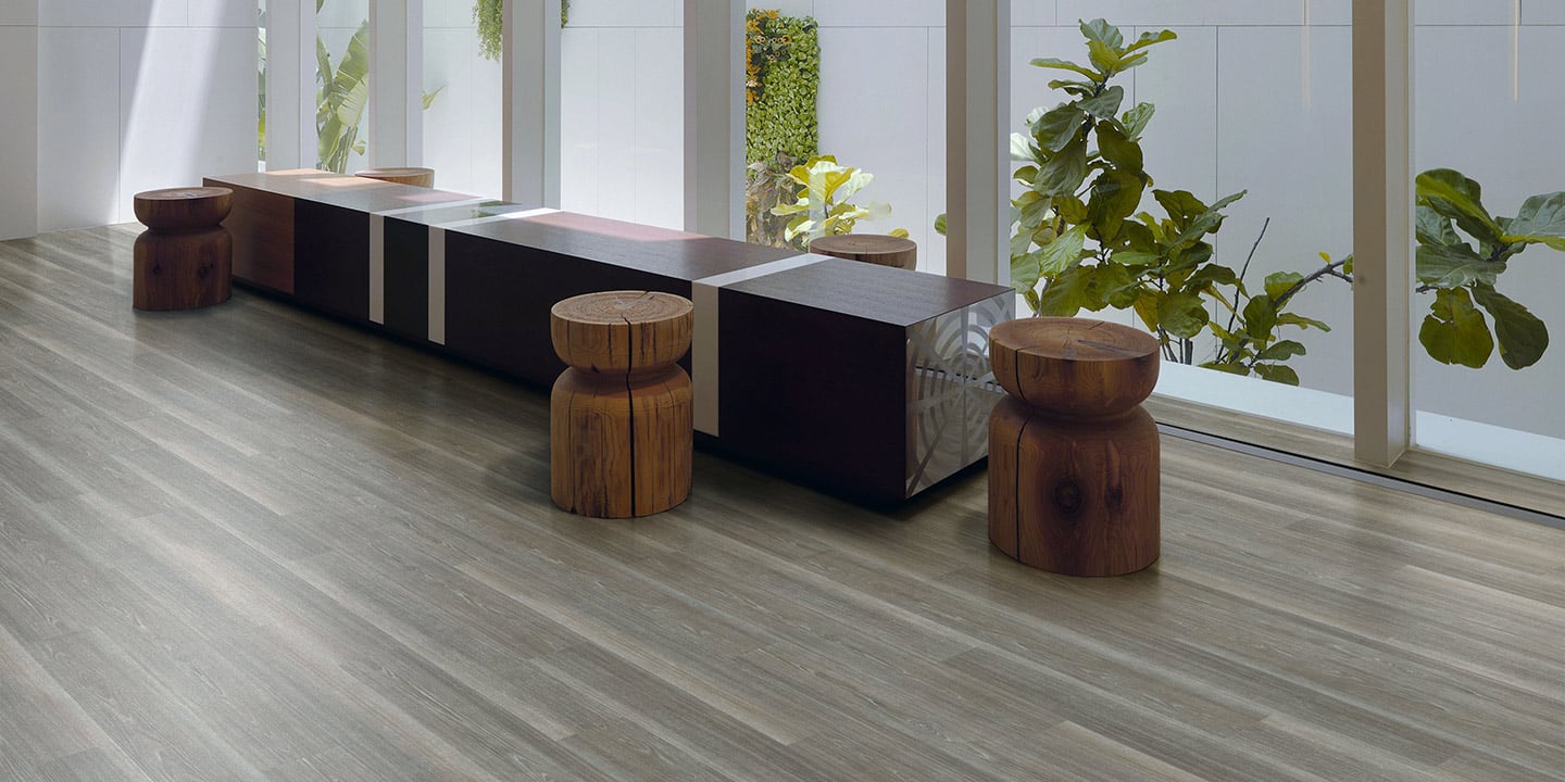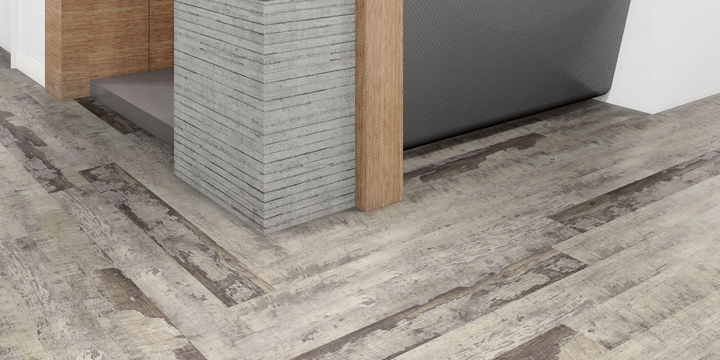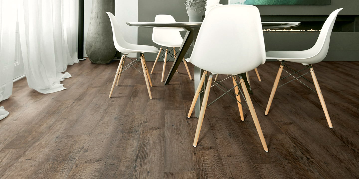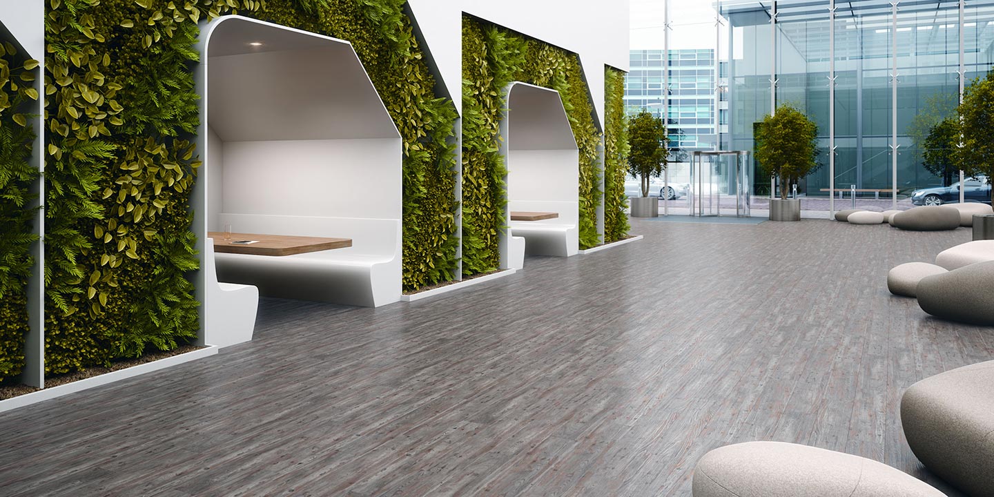 Pavimento vinilico stratificato, pressato, antistatico, flessibile, stampato, saldabile, con decori effetto legno.