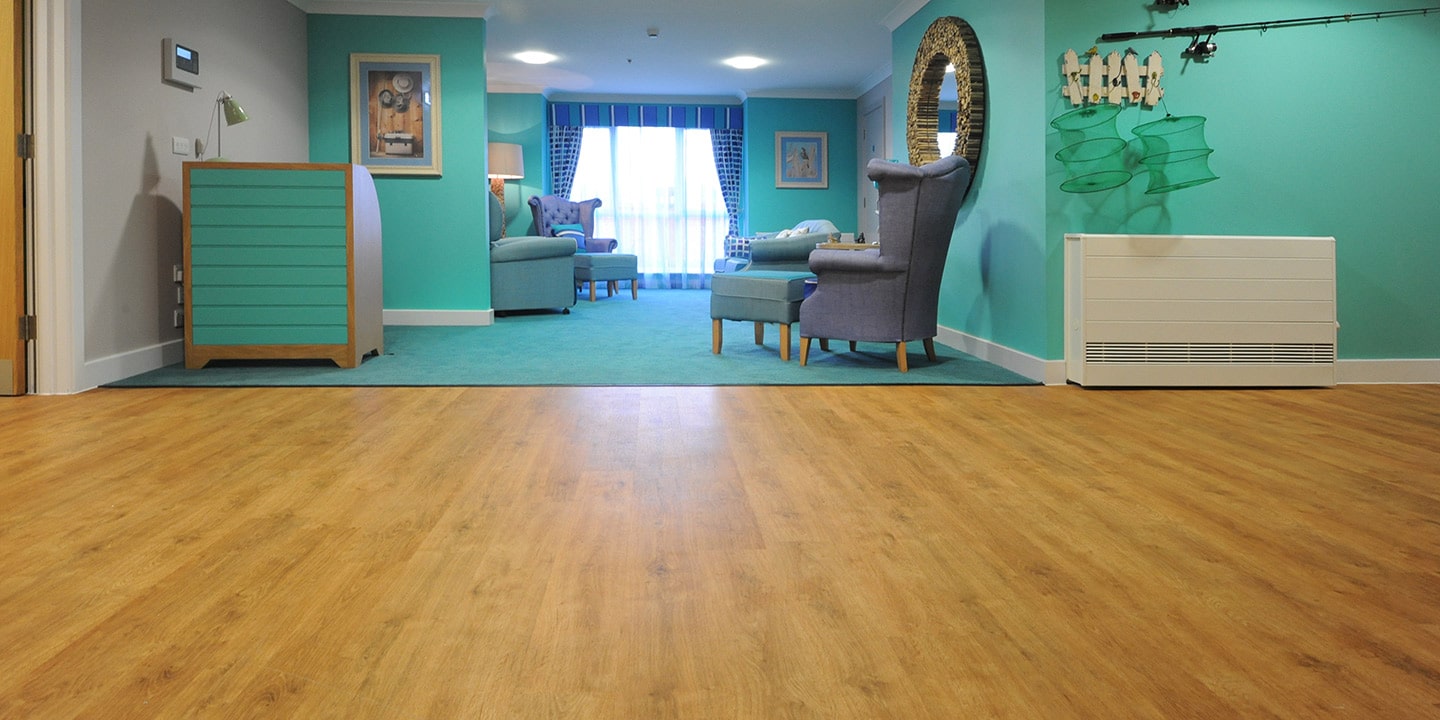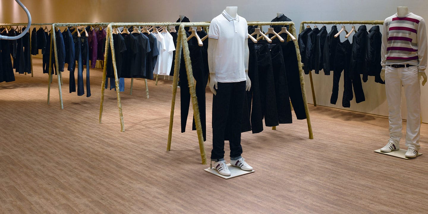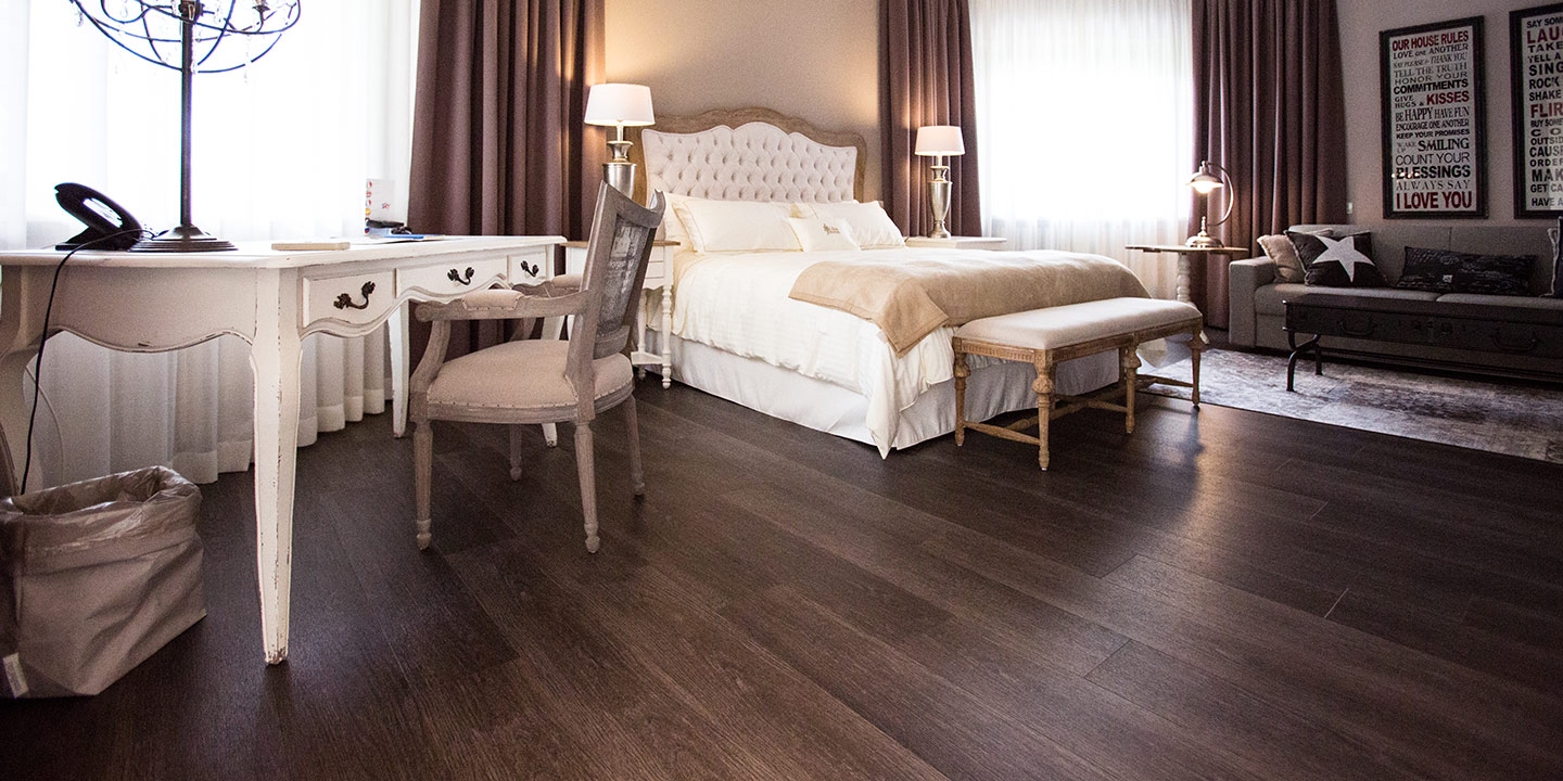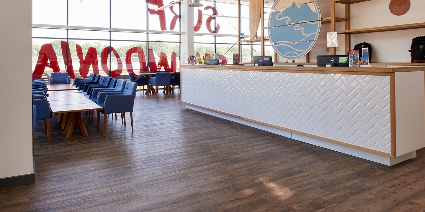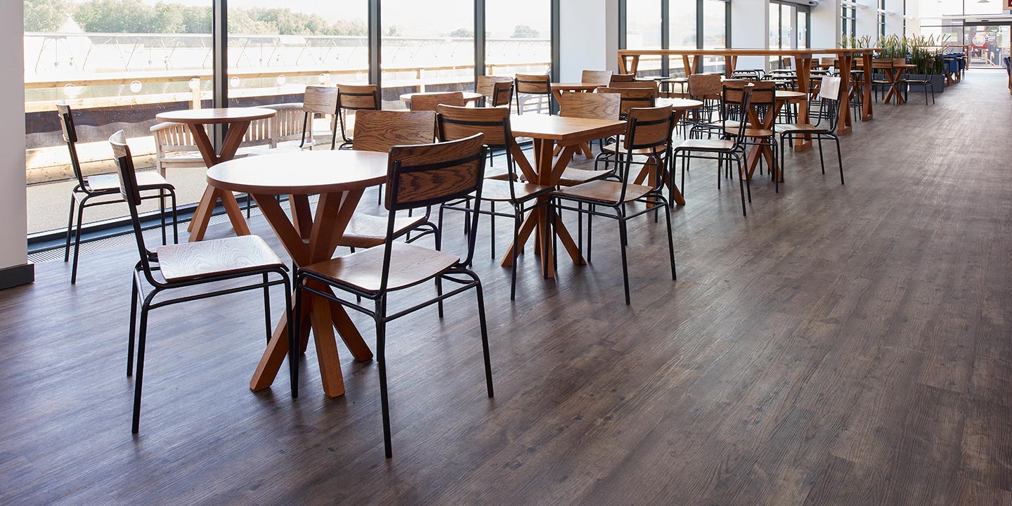 Pavimento vinilico stratificato, pressato, antistatico, flessibile, stampato, saldabile, con decori effetto legno.