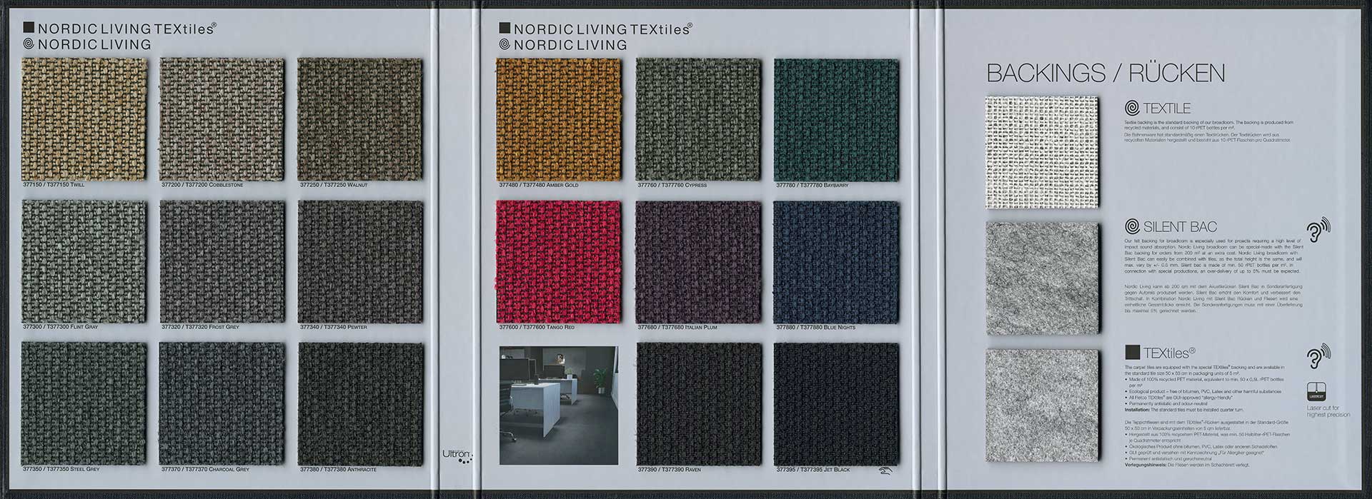e confortevoli al calpestio. Il supporto tessile è in feltro speciale TEXtiles®.