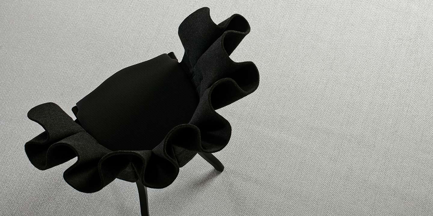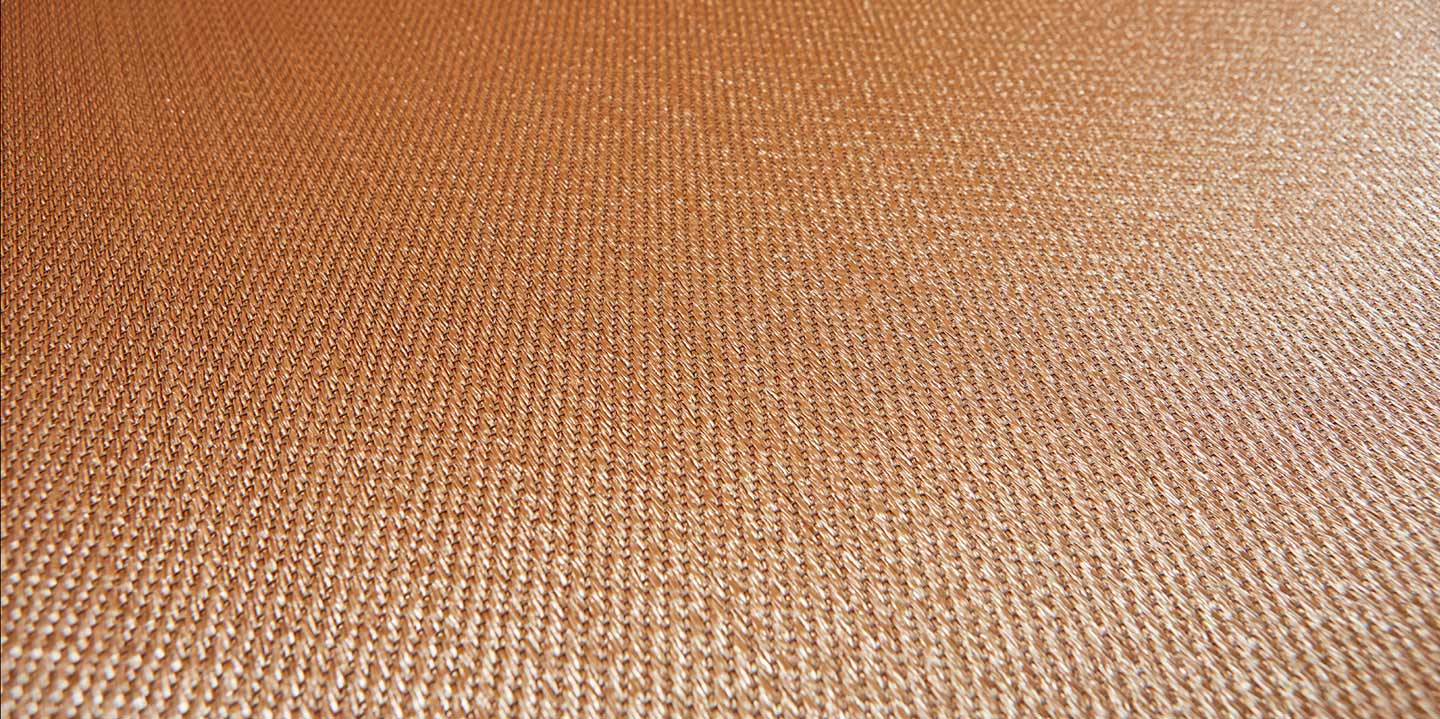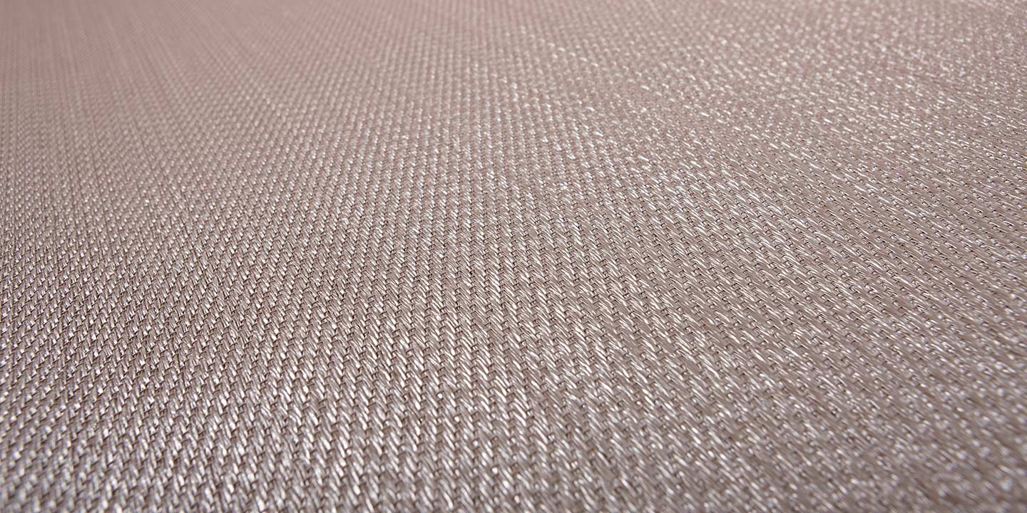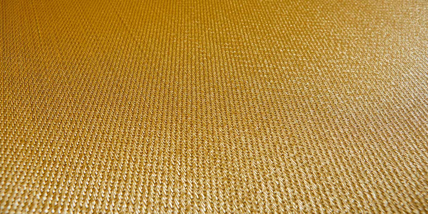 (+ un 5 strato opzionale per la versione acustica, costituito da materiale in feltro contenente PET da bottiglie riciclate, che aiuta ad attenuare l’impatto di suoni e rumori). Filato metallico a sezione piatta, disegni a tinta unita.