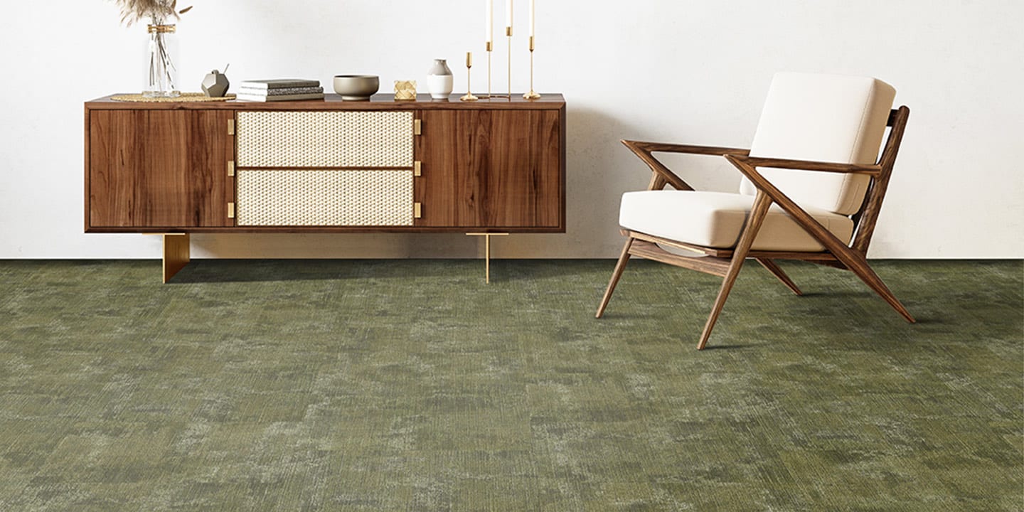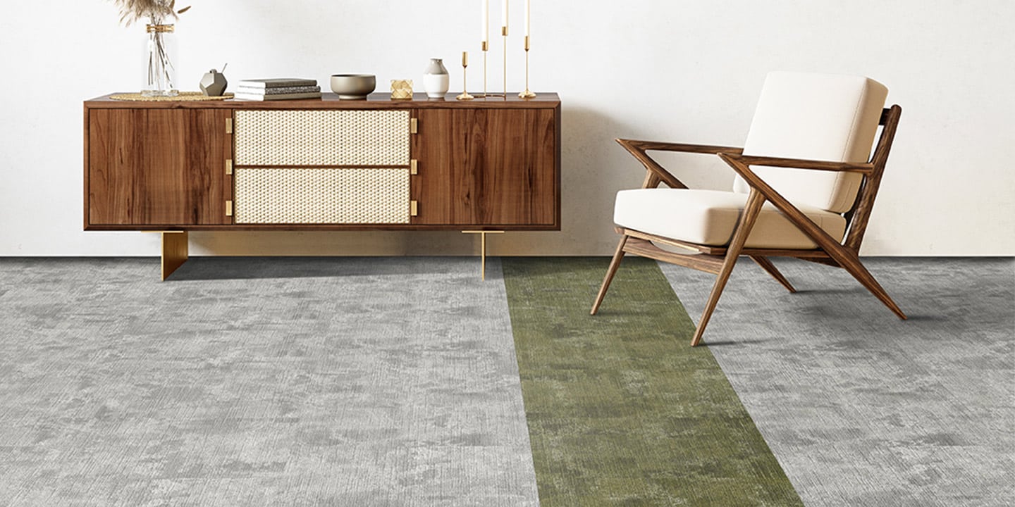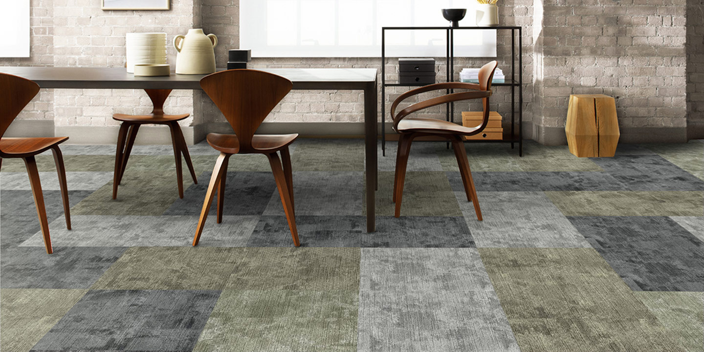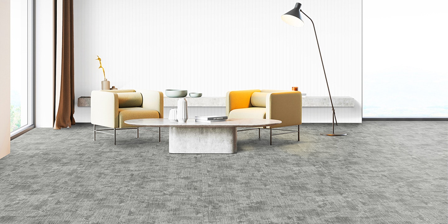 Moquette in quadrotte autoposanti Tufted Bouclé, Textured Loop Pile. 69% di contenuto riciclato.
