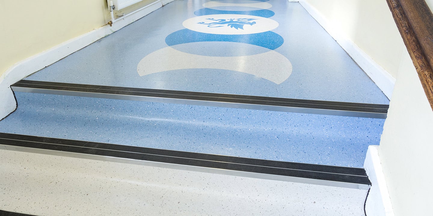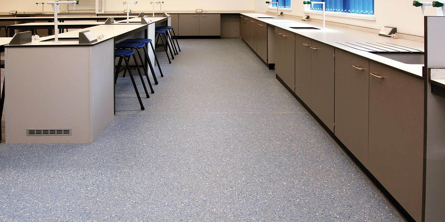 Pavimenti vinilici, antistatici, omogenei, presso-calandrati, flessibili, saldabili, disegno non direzionale, multicolore, superficie liscia poliuretanata. Pavimenti al 100% riciclabili.