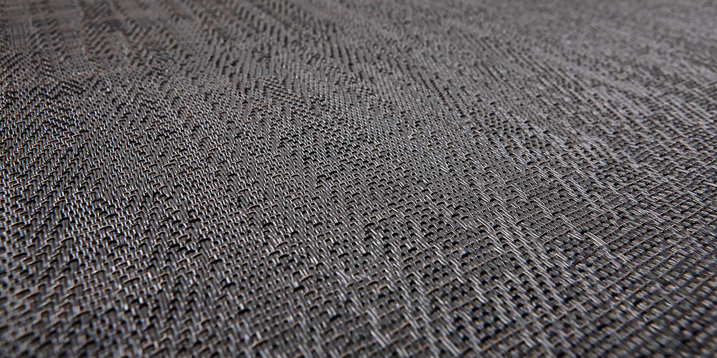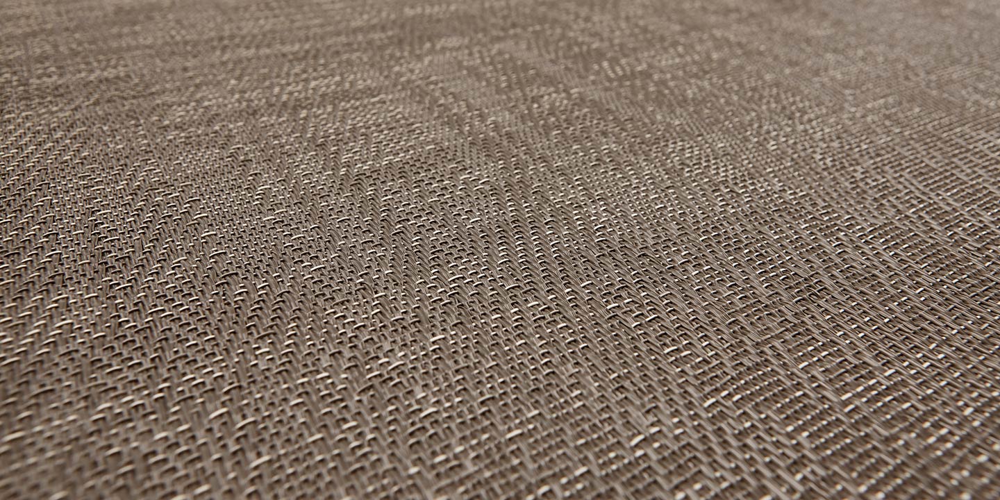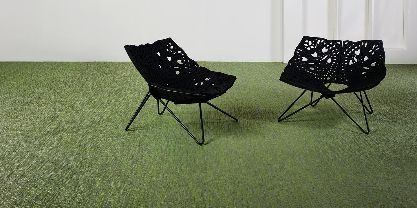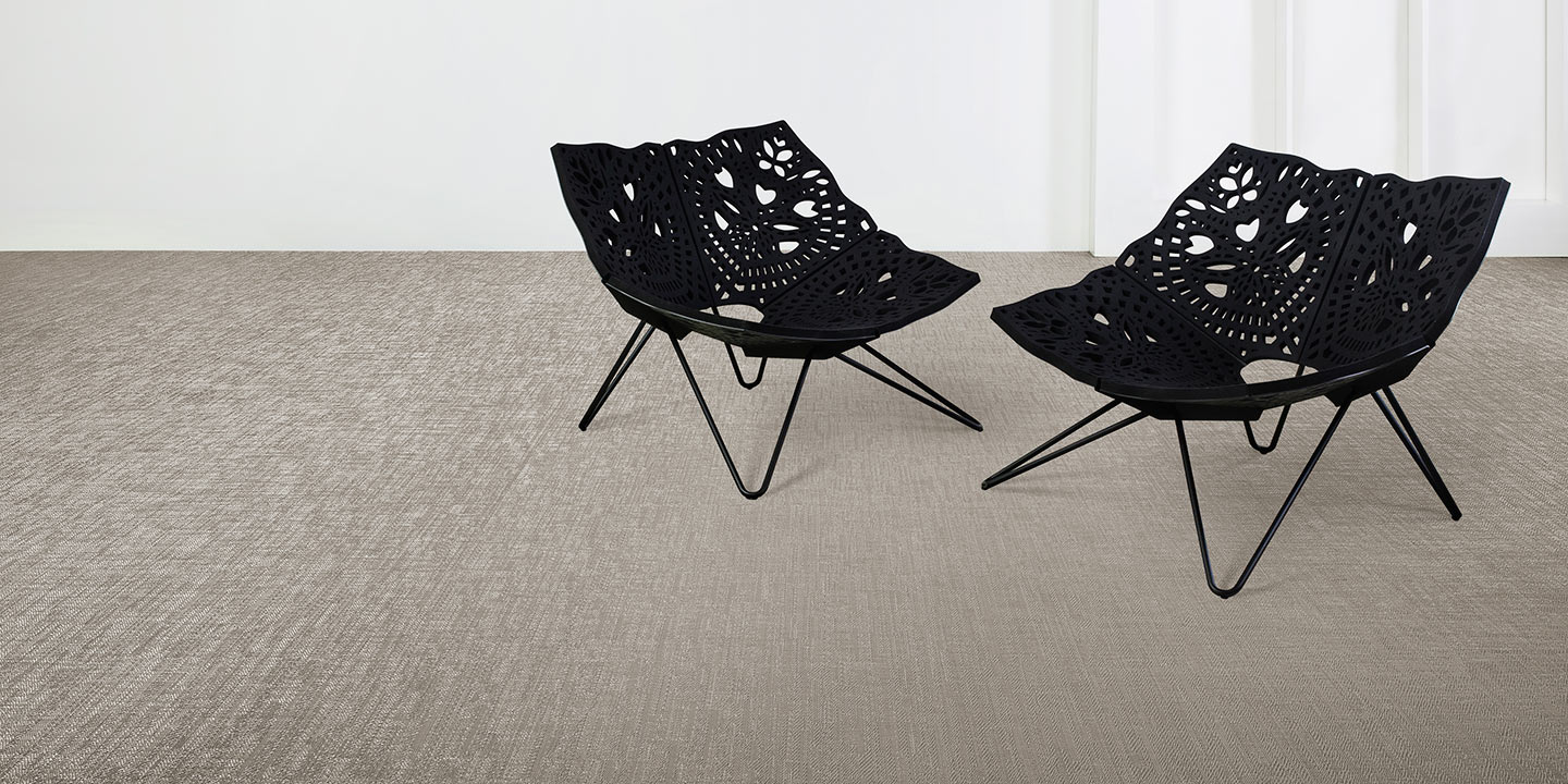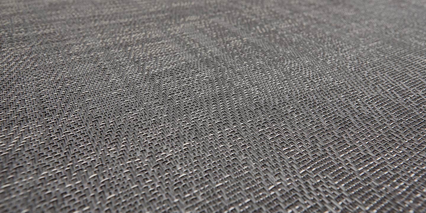 (+ un 5 strato opzionale per la versione acustica, costituito da materiale in feltro contenente PET da bottiglie riciclate, che aiuta ad attenuare l’impatto di suoni e rumori). Filato a sezione a “S”, trama bicolore, tessitura jacquard random.