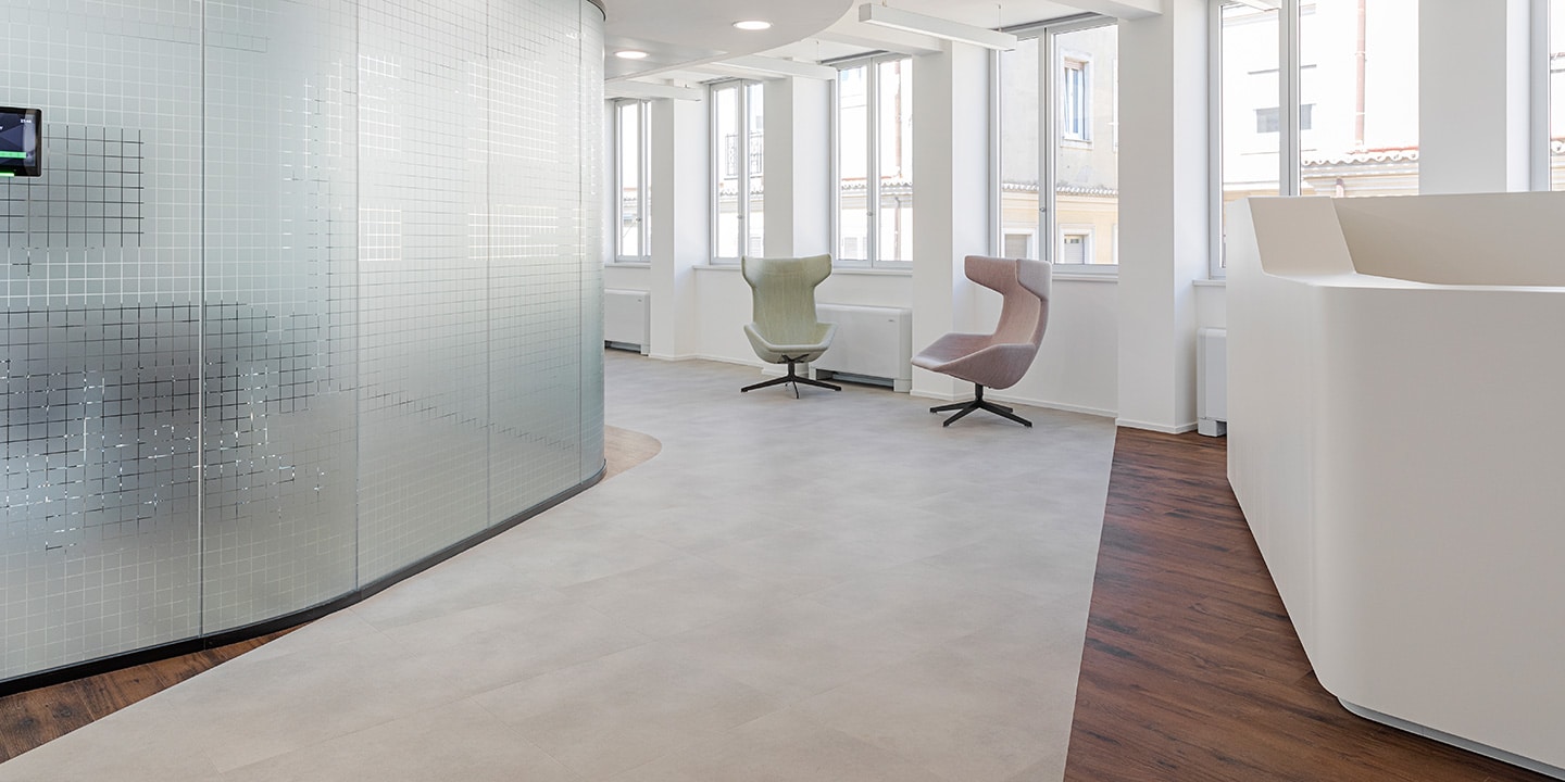 Pavimento LVT effetto legno ed effetto pietra Expona Simplay / Moquette Tufted Bouclè Dsgn Absolute / Pavimento vinilico eterogeneo Esa Palette