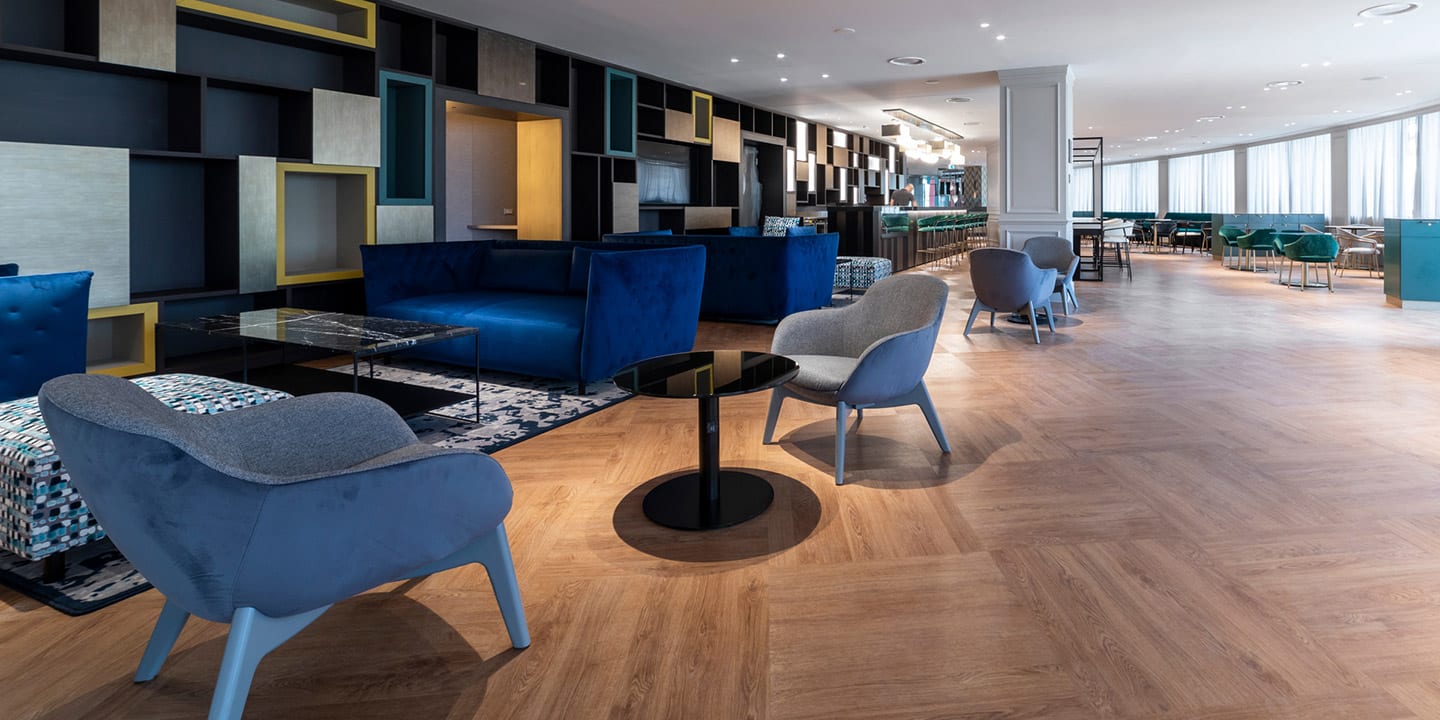 Mq 250 di pavimento in parquet vinilico flottante per le 310 camere e in parquet naturale per le 25 Suites