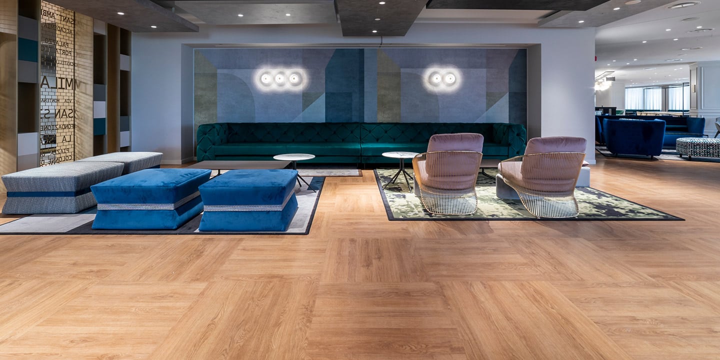 Mq 10.700 di pavimenti LVT effetto legno, Expona Simplay in formati personalizzati con posa a spina o a cassettoni