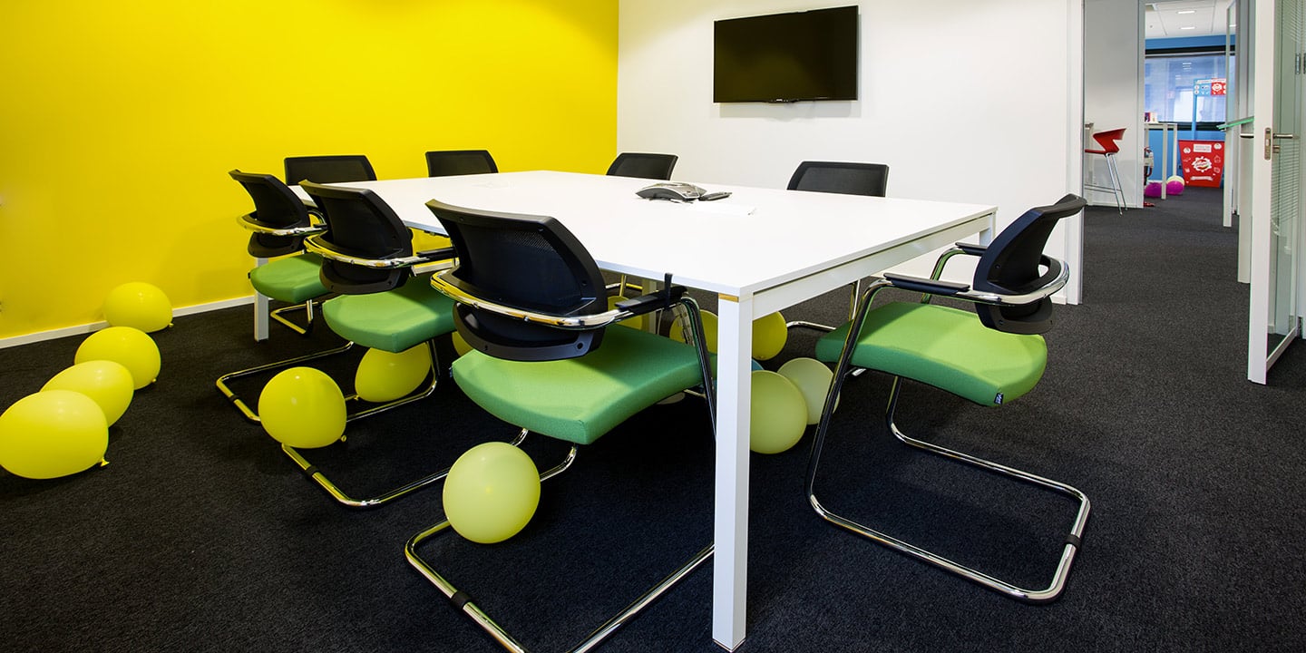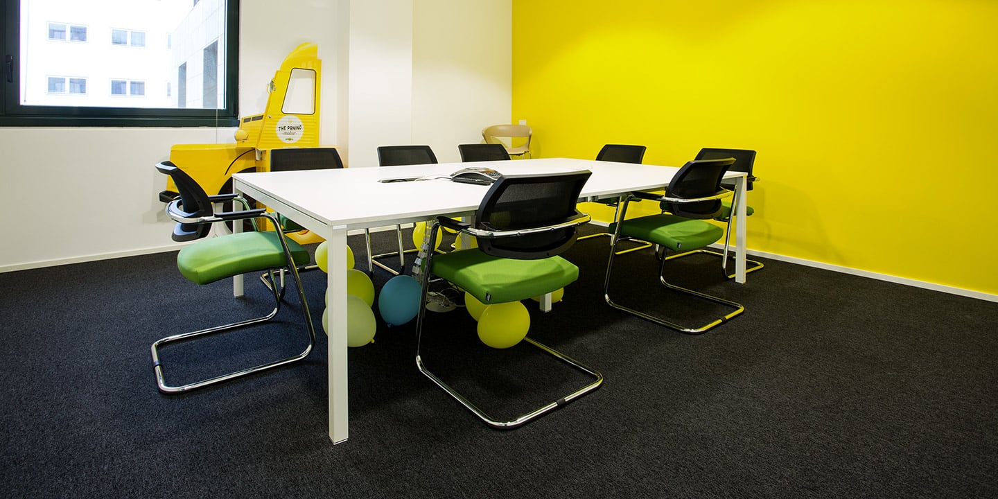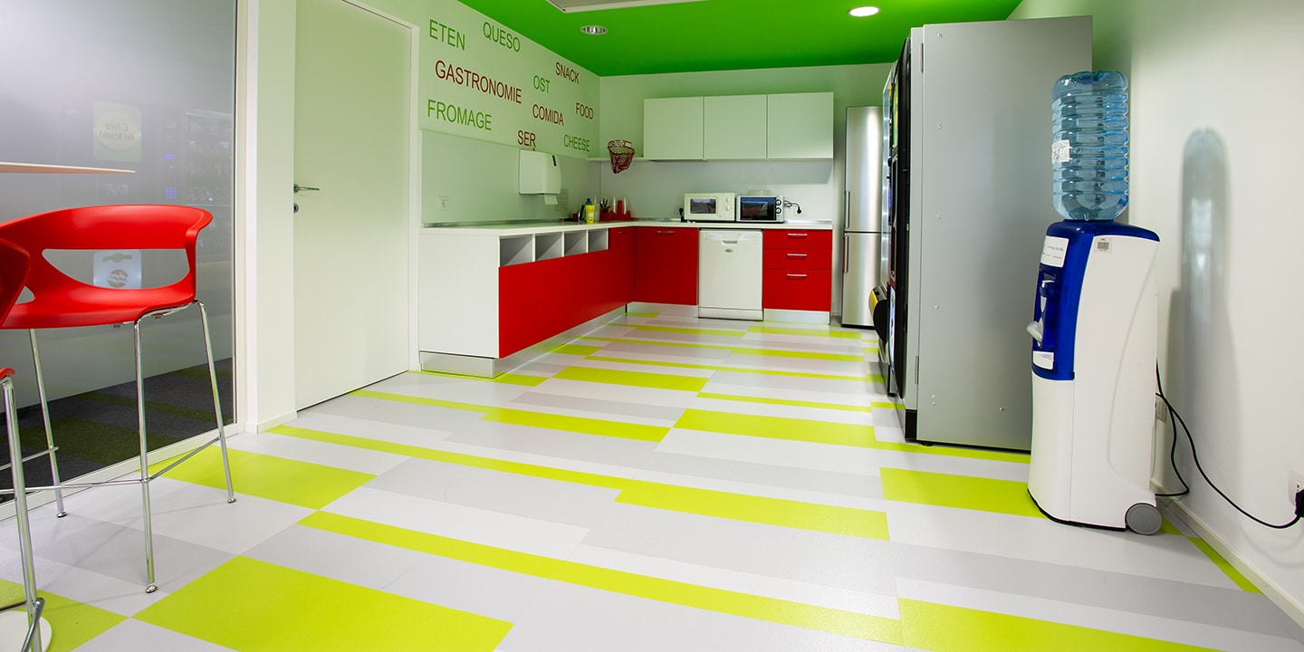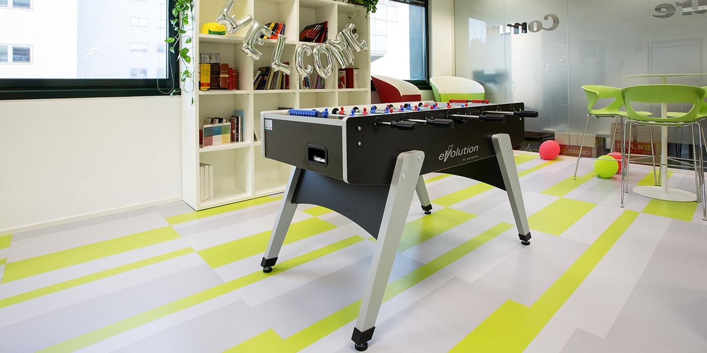 mq. 72 di S608 Fractile col. 622 – 625 – 626, mq. 650 moquettes in quadrotte autoposanti First col. 990 con inserti di Step col. 60 F e 30 F per la creazione del logo “Sharing Smiles”